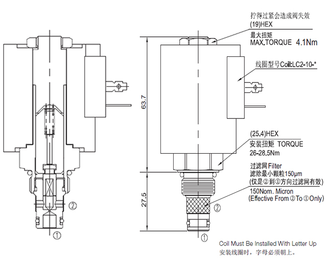 得電時,②到①,①到②互通,建議油口②為負載保持油口。