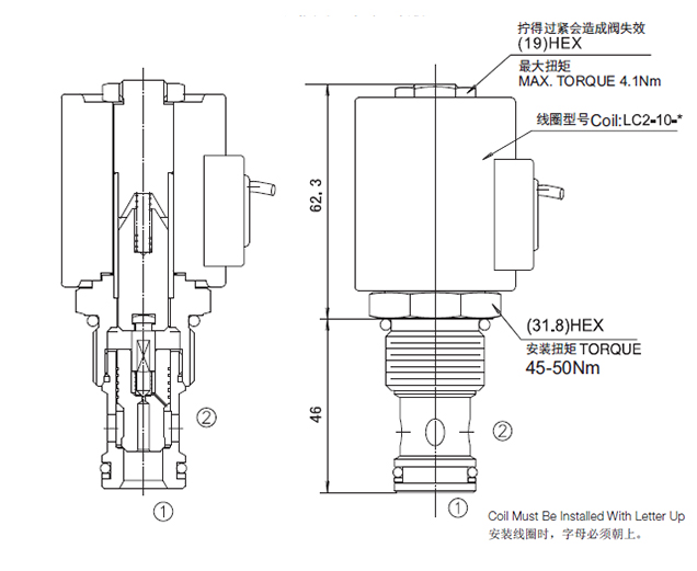 失電時,①到②相當(dāng)于單向閥,②到①關(guān)閉;