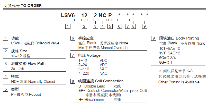 流量請(qǐng)查看《壓力-流量曲線圖》插孔12-2過(guò)濾參考《油液清潔度》最大工作壓力350Bar內(nèi)泄漏3 drops/min.(滴/分)max. at 350bar溫度-40°F to +212°F(-40°C to +100°C)線圈額定負(fù)載Continuous from 85% to 115% of nominal voltage(連續(xù)工作電壓)油液Mineral-based fluids with viscosities of 7.4 to 420 cSt.(礦物油粘度)閥塊材料鋼和球鐵允許使用最大壓力350bar -