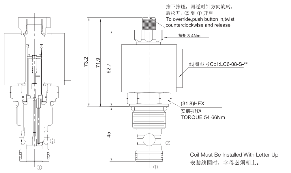 失電時(shí),①到②相當(dāng)于單向閥,②到①關(guān)閉;