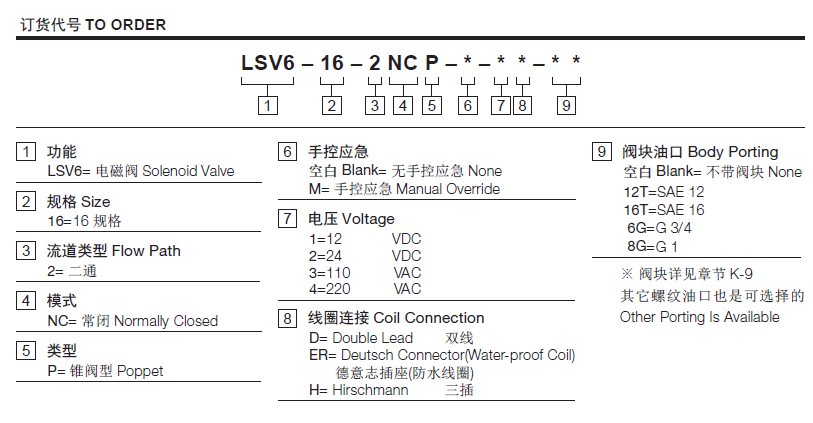 流量請查看《壓力-流量曲線圖》插孔16-2過濾參考《油液清潔度》最大工作壓力350Bar內(nèi)泄漏3 drops/min.(滴/分)max. at 350bar溫度-40°F to +212°F(-40°C to +100°C)線圈額定負(fù)載Continuous from 85% to 115% of nominal voltage(連續(xù)工作電壓)油液Mineral-based fluids with viscosities of 7.4 to 420 cSt.(礦物油粘度)閥塊材料鋼和球鐵允許使用最大壓力350bar -
