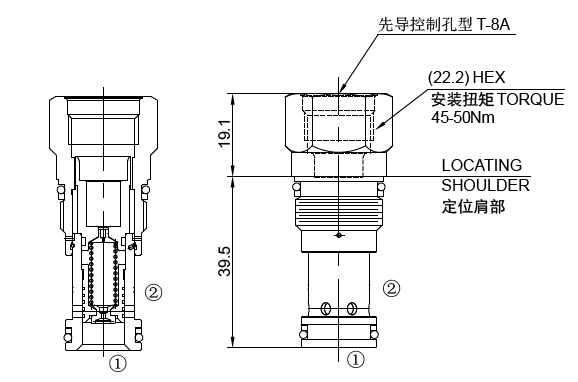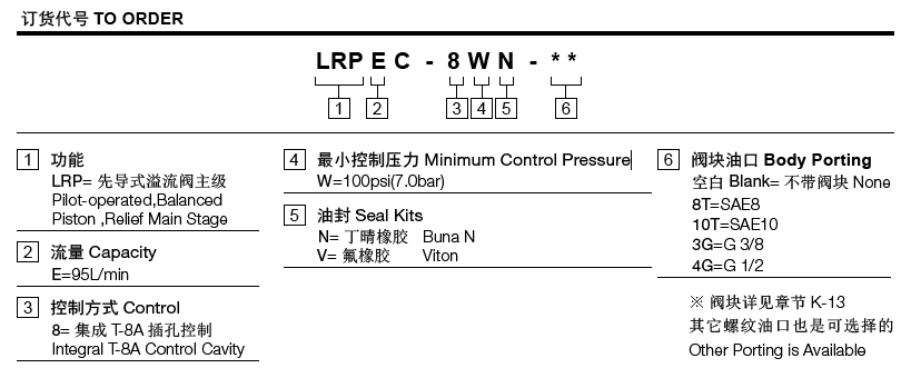 制插孔可接受任何T-8A 插孔的壓力控制插裝閥。當(dāng)進(jìn)口(①口)壓力達(dá)到先導(dǎo)級(jí)控制