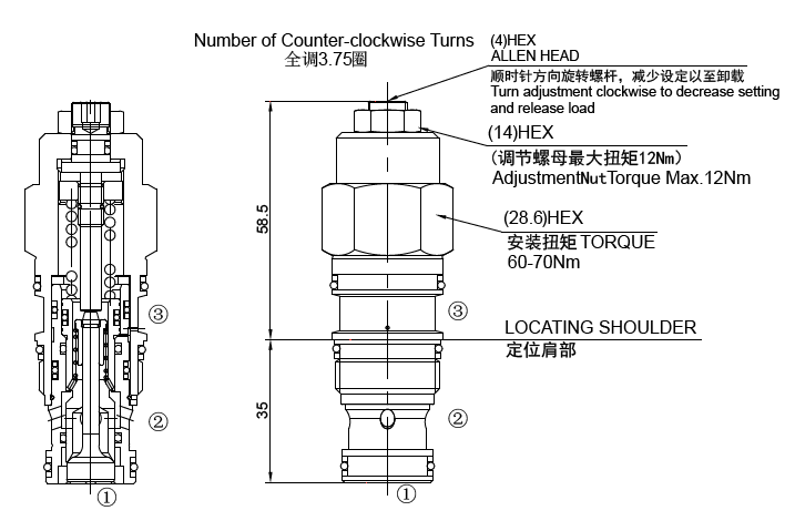 ②口的背壓按“控制比 +1”的倍數(shù)加到溢流閥的設(shè)定值上即增加值 =(1+ 控制比)×壓力值。
