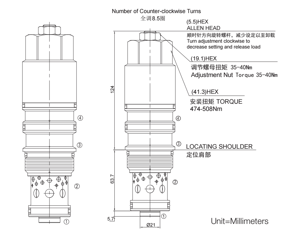 有效設(shè)定值。因彈簧腔通外接口(④口),②口的背壓不會影響閥的設(shè)定值。