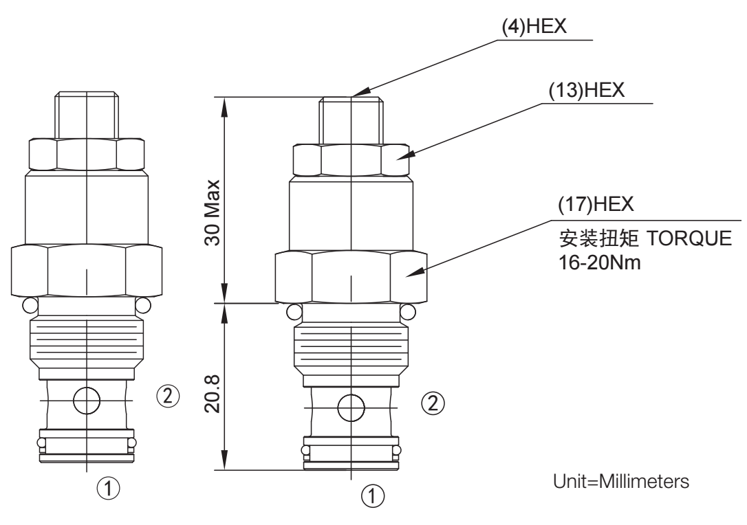 節(jié)流閥流量大小可通過(guò)調(diào)節(jié)螺桿來(lái)實(shí)現(xiàn)。②到①節(jié)流,①到②開(kāi)啟。