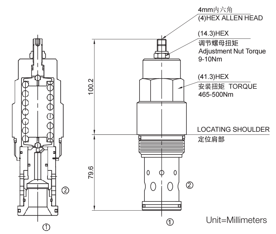 在進口(油口①)達到閥的設定值,閥開始向油箱(油口②)溢流,節(jié)流以限制壓力