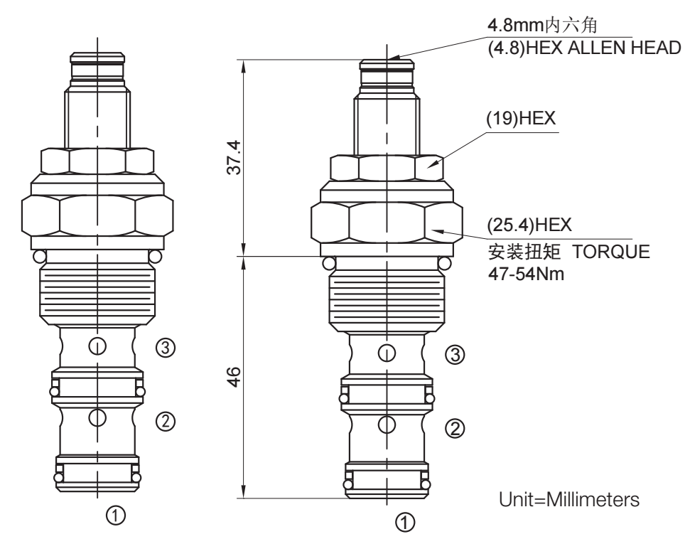 在穩(wěn)態(tài)時,油液從②口到③口封閉,直到②口壓力達到預定的彈簧設定,或者①口受