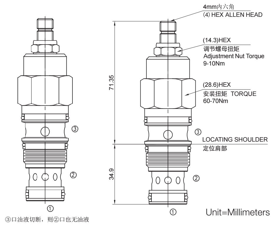 旁路②口可作為工作口。流量的調(diào)整范圍為名義流量設(shè)定值的 ±25%。