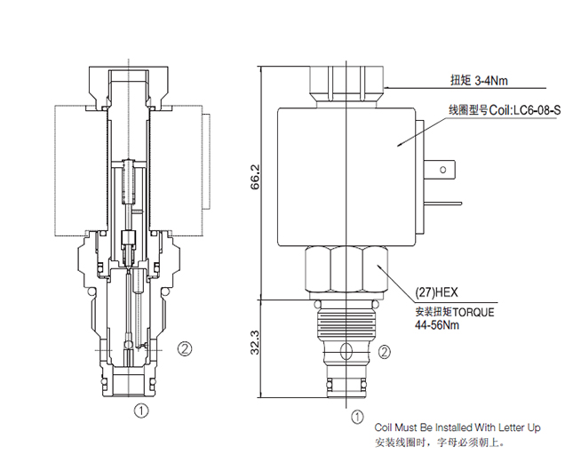 失電時(shí),①到②相當(dāng)于單向閥,②到①關(guān)閉;