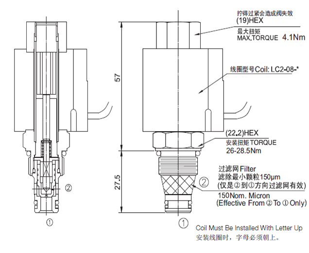 得電時(shí),②到①關(guān)閉,當(dāng)①口壓力超過電磁鐵力,①到②方向通。